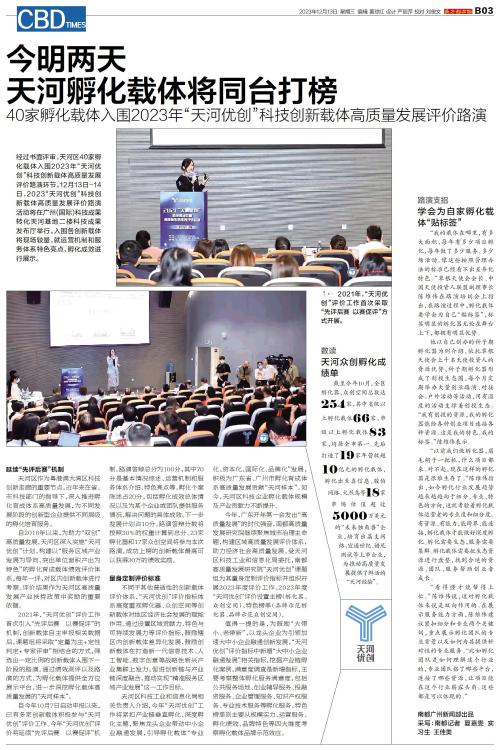 经过书面评审,天河区40家孵化载体入围2023年“天河优创”科技创新载体高质量发展评价路演环节。12月13日-14日,2023“天河优创”科技创新载体高质量发展评价路演活动将在广州(国际)科技成果