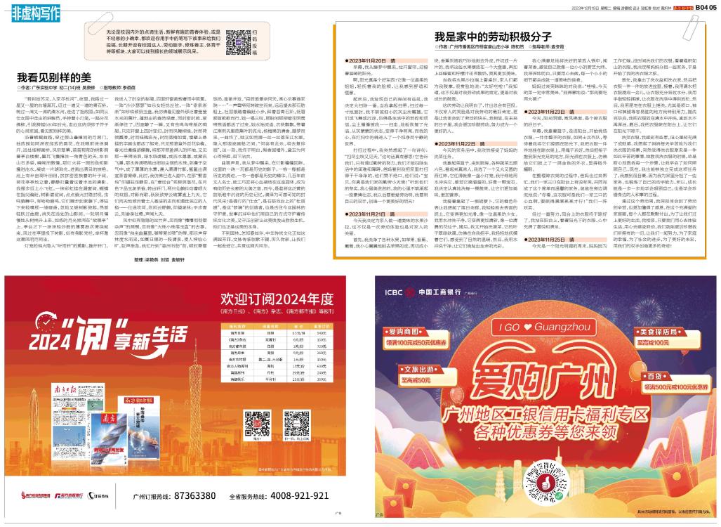 ◎作者:广州市番禺区市桥富豪山庄小学 陈初然 ◎指导老师:麦冬霞 ●2023年11月20日 晴 早晨,我从睡梦中醒来,拉开窗帘,迎接着温暖的阳光。 啊,阳光真是个好东西!它像一位温柔的姐姐