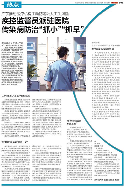 传染病防治如何“抓小”“抓早”,“从今年9月派驻广东省第二人民医院担任疾控监督员后,相比过去,与医院方面有了更为深入沟通,双方联动,对传染病的防控工作查漏补缺,共同做好传染病防控工作。”杨芬作为广