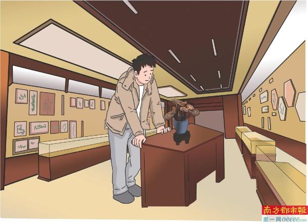 此外,陈列在展馆里的还有人参、江豚的标本、海龟的标本、见血封喉树等,其中最吸引我的是见血封喉树、鸡血藤。见血封喉树一劈开,就会有白色的汁液流出,这白色的汁液是有剧毒的,当你碰到后就有可能休克死亡。鸡血藤是一种会“流血”的植物,当你切开它,就如同鹿茸一般,会有血色冒出,真是太神奇了!