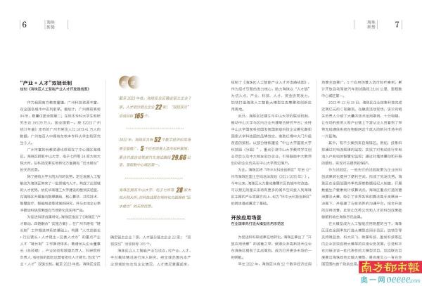 海珠区以人工智能产业为试点,对产业、人才、平台载体情况进行深入研究,把全球范围内本产业领域的标志性企业情况、人才情况掌握起来,绘制了《海珠区人工智能产业人才开发路线图》,作为招才引智的发力核心,助力海珠以“人才链”为切入点,产业、科技、人才、资金协同发力,加快打造海珠人工智能大模型生态集聚和创新应用高地。