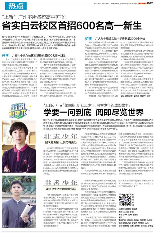 高中扩招成为近年广州教育的一个高频词。近日,广州多所学校透露了2024年高中招生计划。对比去年,不少学校高中会有所扩招。广东实验中学白云校区、黄广牛剑高级中学等预计在2024年高中部正式招生,将为
