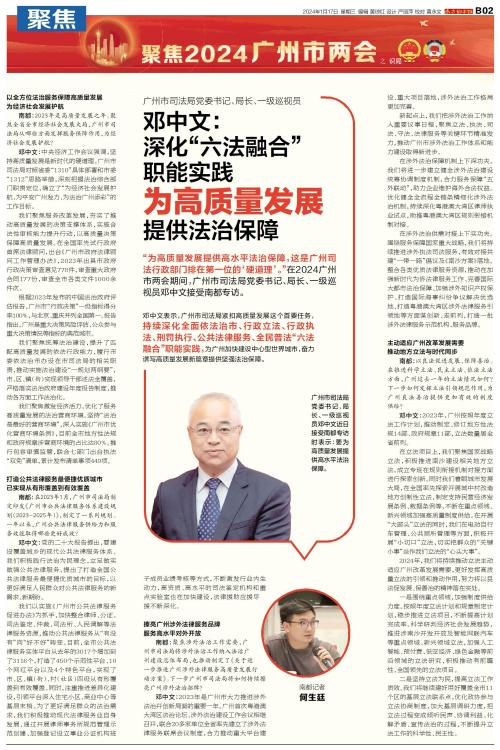 广州市司法局党委书记、局长、一级巡视员邓中文近日接受南都专访时表示:要为高质量发展提供高水平法治保障。 南都记者何生廷 “为高质量发展提供高水平法治