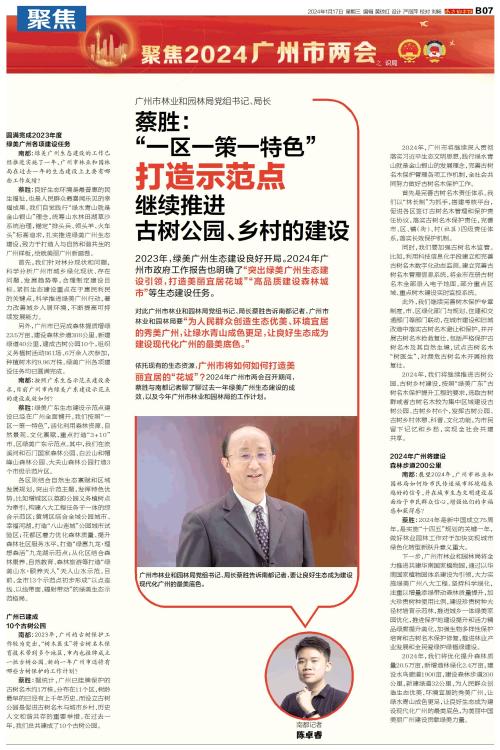 广州市林业和园林局党组书记、局长蔡胜告诉南都记者,要让良好生态成为建设现代化广州的最美底色。 南都记者陈卓睿 2023年,绿美广州生态建设良好开局。