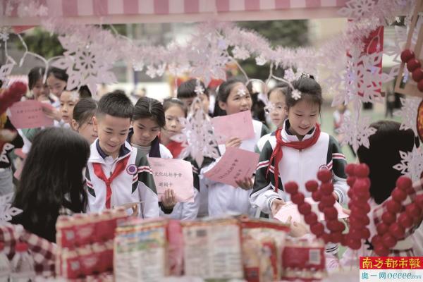 在给一、二年级设置的知识游园中,学生可以拿着游园卡,自由选择识字认词、看钟表说时间、看水果说英文等游戏,完成一个游戏盖一个章。既将课程知识运用到实践中,又充满欢声笑语。而高年级参加的趣味运动会,有拔河、滚球等考验集体意识和团队精神的项目,也有经典阅读、龙舟讲座、葫芦丝音乐会等帮助学生全面发展的活动。有趣的课程大餐,让孩子玩中学,笑中悟。
