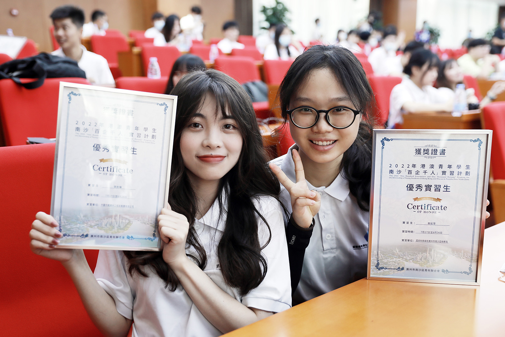 2022年南沙“百企千人”实习计划结业礼暨“聊来南沙”港澳青年就业训练营。通讯员 刘伟 摄