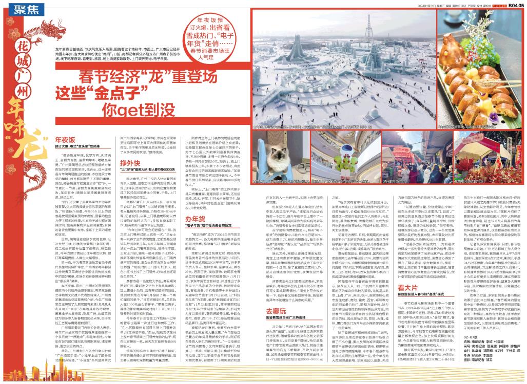 龙年新春日益临近,节庆气氛渐入高潮。围绕着过个精彩年,市面上,广大市民已经开始置办年货,各大商家纷纷使出“绝招”。日前,南都记者兵分多路走访广州春节前的市场。线下吃年夜饭、看电影、旅游,线上消费家政服务、上门喂养宠物、电子年货。