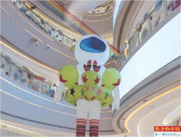 商场里的“太空漫步 梦想随行”艺术装置。