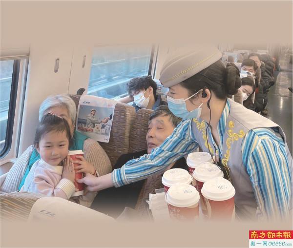 “那个女孩”高铁奶茶品牌名和杯身设计都源自乘务员,从2021年上线至今收获了不少好评。“金桔柠檬茶清爽可口,是大部分旅客在炎热夏天的首选;而在冬天,更多旅客会选择温热的港式红豆奶茶或芝士奶盖乌龙茶,这两款产品醇香浓郁、温暖旅途。”韩笑说,今年春运,广铁与南都推出联名“南方的女孩”高铁奶茶。大红色杯身、特制绘图,让它承载了浓浓的年味和乡情。