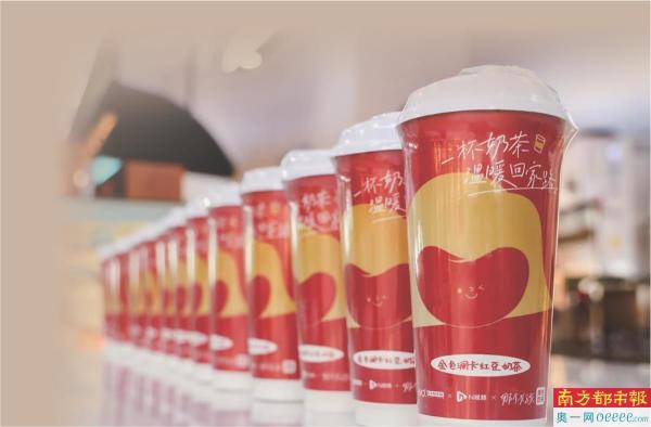2024年春运期间,南方都市报&“那个女孩”高铁奶茶联名款产品——“南方的女孩”正式上线,这款联名奶茶为“金色澜卡红豆奶茶”,口感丝滑,软糯醇香。联名款产品设计以红金色作为主色调,寓意“新春热闹”,杯身上的画面“女孩笑脸”,则寓意“回家的喜悦”,整个视觉充满欢喜的气息,也表达了品牌的新年祝福,让人印象深刻。
