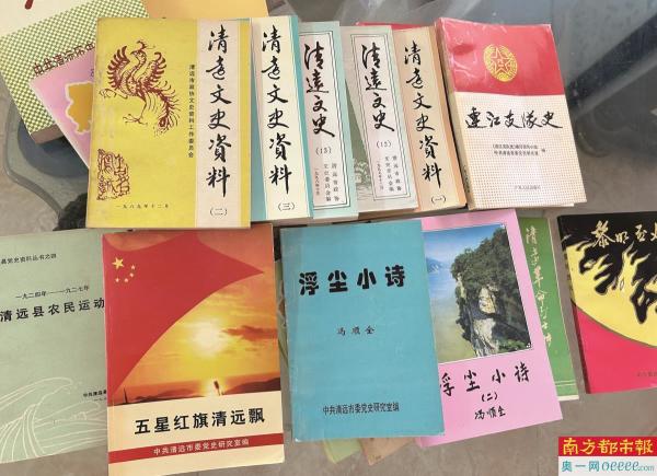 冯顺全退休前最后一份工作是编写清远市的党史,他热情地给我展示他以前参与编写的书。一本本充满年代感的书是冯顺全珍藏多年的宝贝。