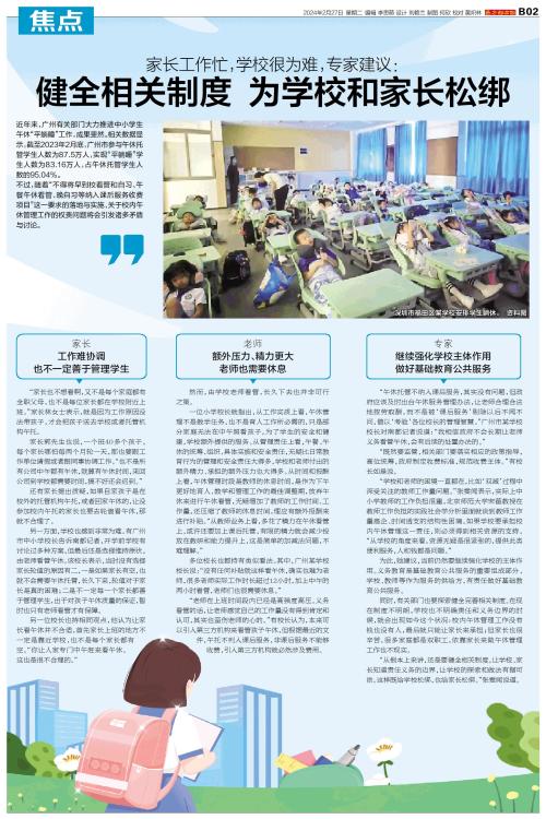 近年来,广州有关部门大力推进中小学生午休“平躺睡”工作,成果斐然。相关数据显示,截至2023年2月底,广州市参与午休托管学生人数为87.5万人,实现“平躺睡”学生人数为83.16万人,占午休托管学
