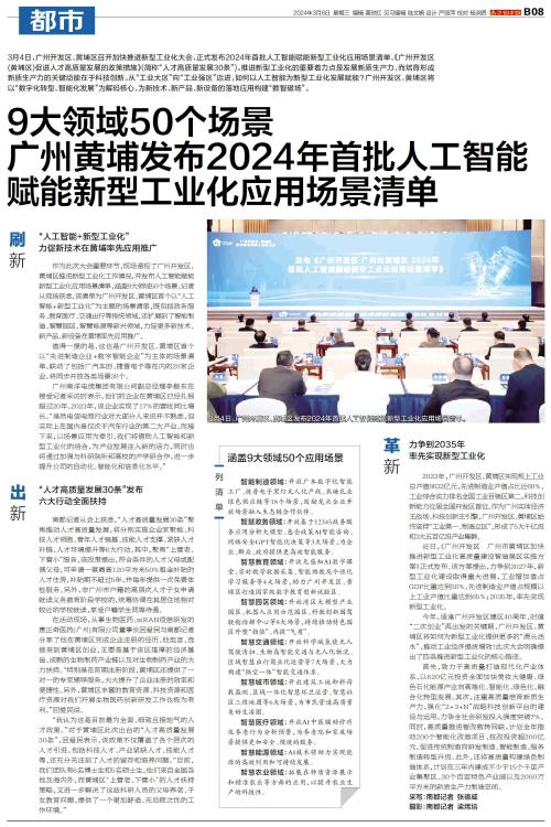 9大领域50个场景 广州黄埔发布2024年首批人工智能 赋能新型工业化应用场景清单