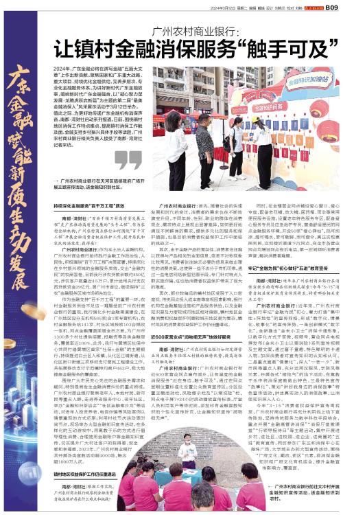 南都·湾财社:广州农村商业银行如何发挥营业网点服务半径深入村镇的独特优势,提高消保工作触及面?