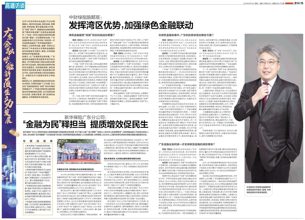 中央财经大学绿色金融国际研究院高级学术顾问、教授,中财绿指首席经济学家施懿宸。 去年10月召开的中央金融工作会议明确提出,做好科技金融、绿色金融、普惠金融、养老金融、数