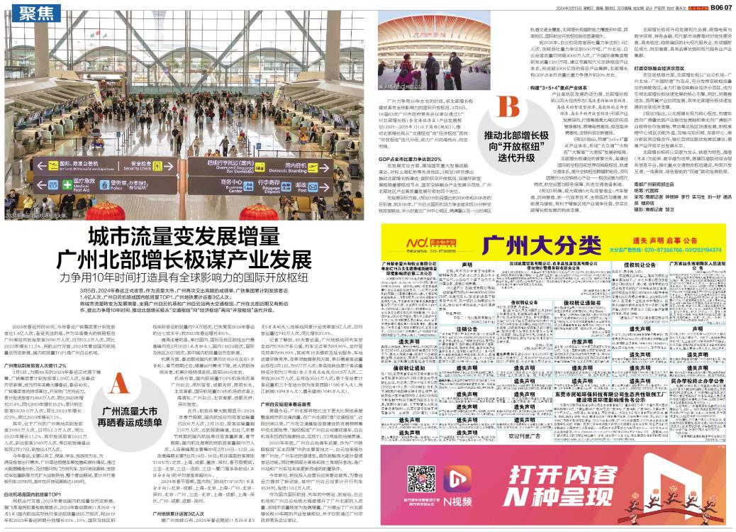 3月5日,2024年春运正式收官。作为流量大市,广州再次交出亮眼的成绩单,广铁集团累计到发旅客近1.4亿人次,广州白云机场成国内航班量TOP1,广州地铁累计运客3亿人次。 将城市流量转变为发展增