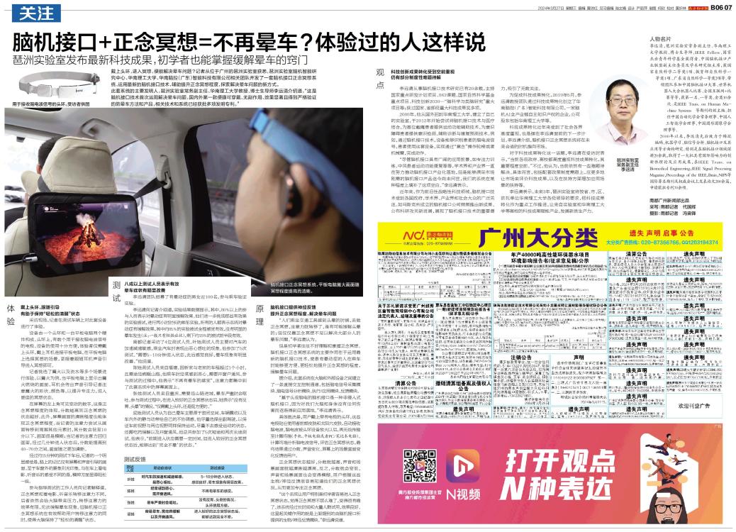 人物名片 李远清,琶洲实验室常务副主任、华南理工大学教授、博士生导师、IEEE Fellow、国家杰出青年科学基金获得者、中国脑机接口产业联盟副主任委员及学术研究组主席,获国家自然科学二等奖1项