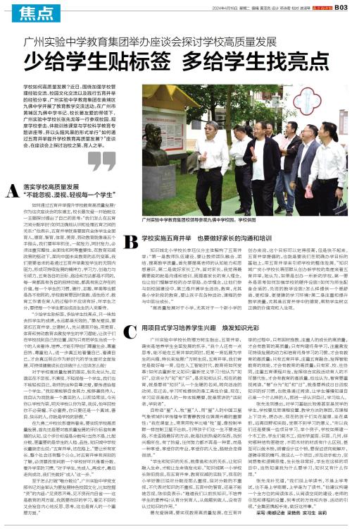 学校如何高质量发展?近日,围绕加强学校管理经验交流、校园文化交流以及践行五育并举的经验分享,广州实验中学教育集团在黄埔区九佛中学开展了教育教学交流活动。在广州市黄埔区九佛中学书记、校长晏友爱的带领