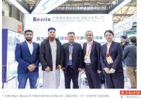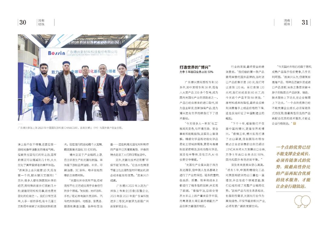广东博兴参加上海2023年中国国际涂料展CHINACOAT,庞来兴博士(中)与国外客户朋友合影。 采写丨南都·琶洲π记者伊晓霞 摄影丨南都·琶洲π记