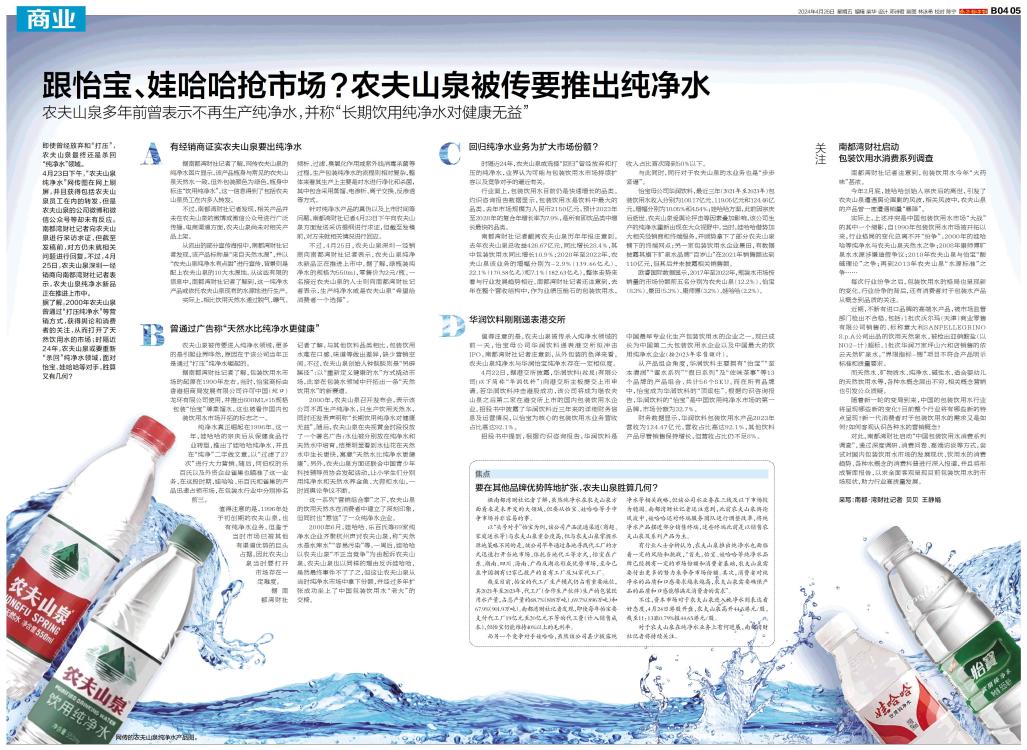 跟怡宝、娃哈哈抢市场?农夫山泉被传要推出纯净水