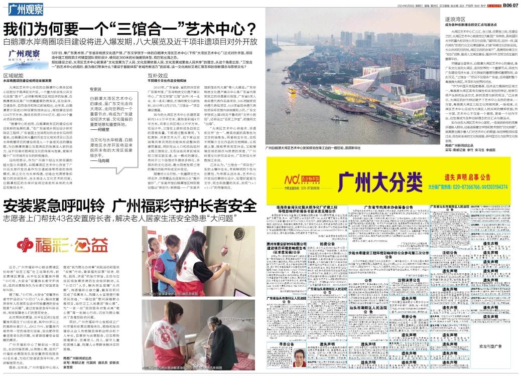 5月1日,集广东美术馆、广东省非物质文化遗产馆、广东文学馆于一体的白鹅潭大湾区艺术中心(下称“大湾区艺术中心”)正式对外开放。项目由中国工程院院士何镜堂团队领衔设计,横向近360米的长轴建筑体型,