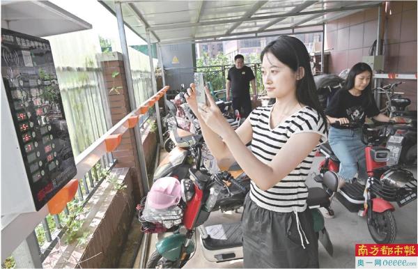 2023年7月11日,市民在小区电动自行车集中充电点扫码充电。 新华社发