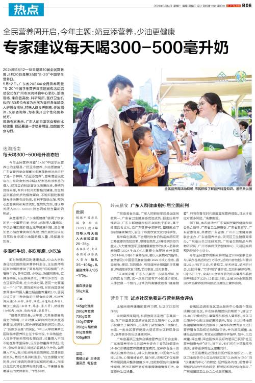 2024年5月12—18日是第10届全民营养周,5月20日是第35届“5·20”中国学生营养日。 5月12日,广东省2024年全民营养周暨“5·20”中国学生营养日主题宣传活动启动仪式在广州市天
