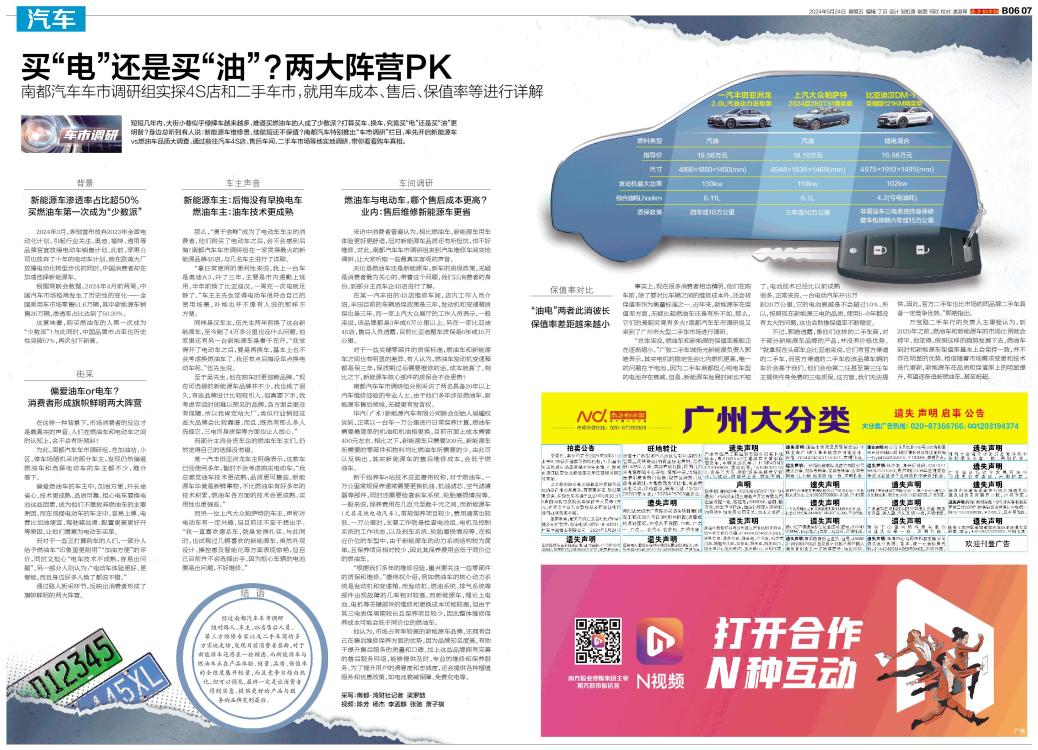 短短几年内,大街小巷似乎绿牌车越来越多,难道买燃油车的人成了少数派?打算买车、换车,究竟买“电”还是买“油”更明智?身边总听到有人说:新能源车维修贵、续航短还不保值?南都汽车特别推出“车市调研”栏目,率先开启新能源车vs燃油车品质大调查,通过前往汽车4S店、售后车间、二手车市场等地实地调研,带你看看购车真相。