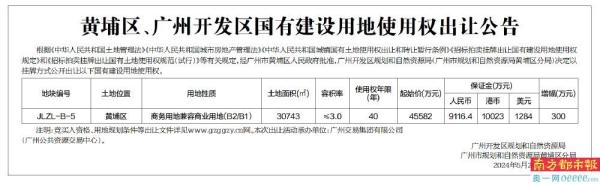 黄埔区、广州开发区国有建设用地使用权出让公告