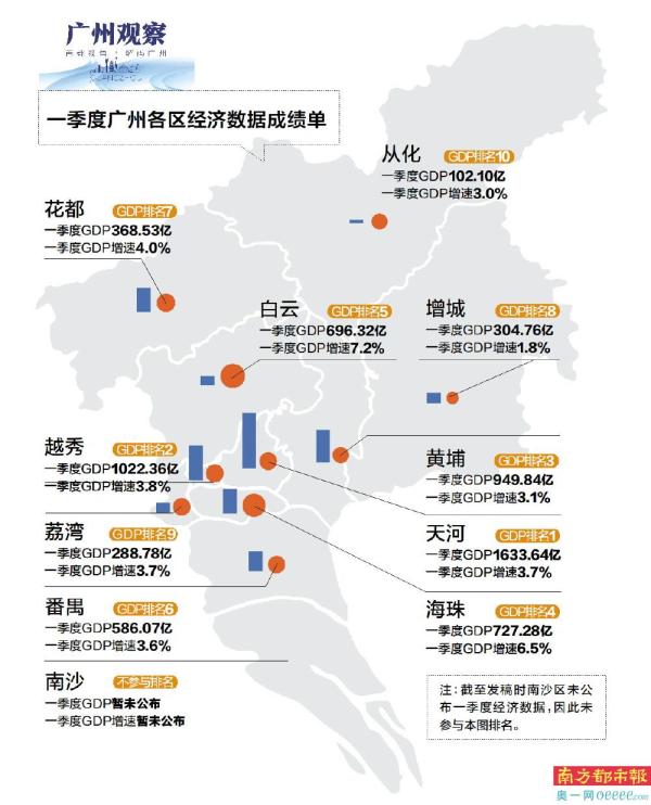 而在楼市方面,面对一季度全市房地产开发投资同比下降3.4%,广州也通过基建(增长18.2%)和工业投资(增长23.2%)的对冲作用实现了固定资产投资同比增长4.3%,这一特点也反映在十一区的经济数据里。