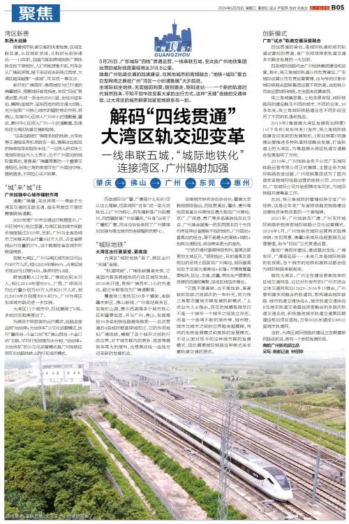 肇庆→佛山→广州→东莞→惠州 5月26日,广东城际“四线”贯通运营,一线串联五城,至此由广州地铁集团运营的城际铁路里程将达318.6公里。 随着广州轨道交通的加速建设,与其他城市的高频融合,“