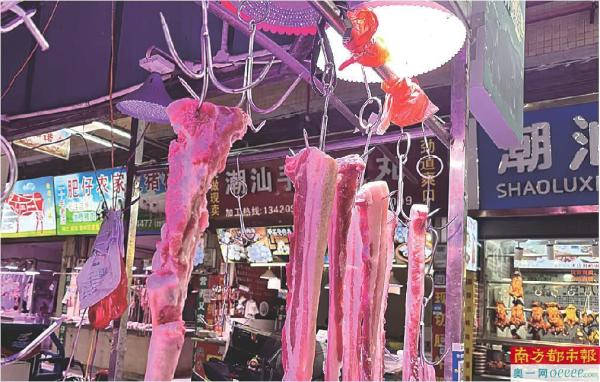 猪肉远看红色近看变白 多区水果档均有使用“生鲜灯”痕迹