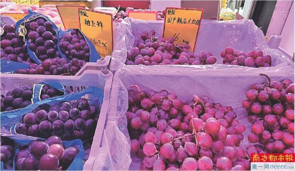 “生鲜灯”照射下的葡萄。