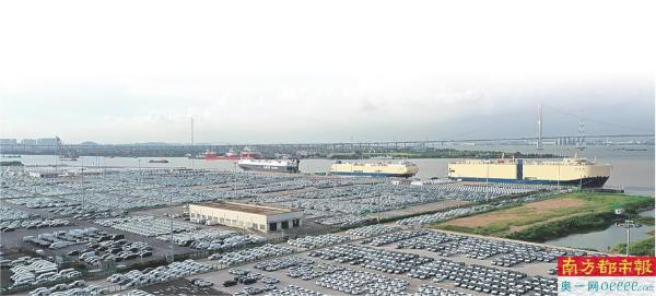 位于黄阁镇汽车物流枢纽岛沙仔岛的南沙汽车码头。黄阁镇成功打造了国内首个“前港后贸”临港汽车出口展贸平台,沙仔岛汽车口岸已开通8条外贸滚装航线。通讯员 南宣供图