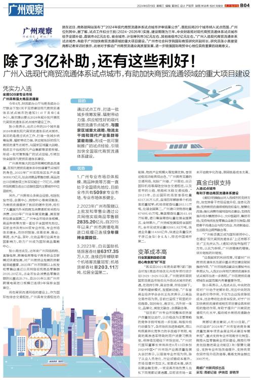 就在近日,商务部网站发布了“2024年现代商贸流通体系试点城市评审结果公示”,首批拟将20个城市纳入试点范围,广州位列其中。据了解,试点工作拟分三批(2024-2026年)实施,建设期限为三年。中