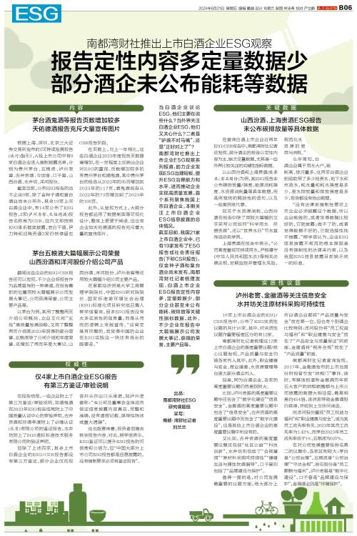 当白酒企业谈论ESG,他们主要在说些什么?当外界关注白酒企业ESG,他们又关心什么?二者是“驴唇不对马嘴”,还是“正好对上了”? 南都湾财社推出上市企业ESG观察系列报道,助力企业发现ESG治理