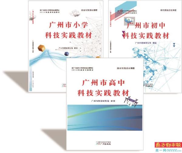 小学、初中和高中版本的《广州市中小学科技实践教材》。 受访者供图