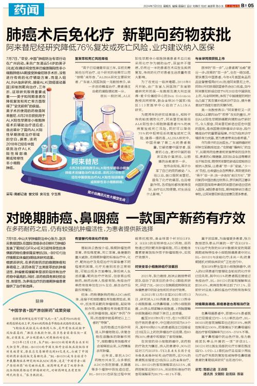对晚期肺癌、鼻咽癌 一款国产新药有疗效