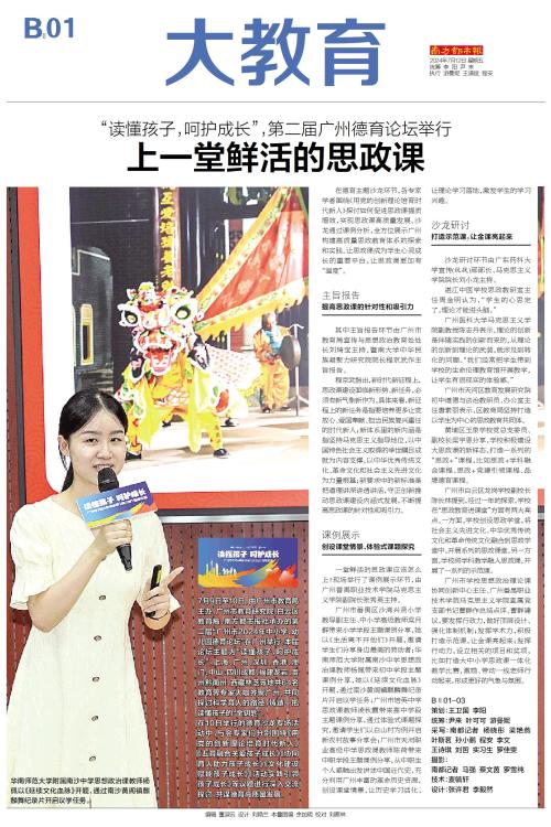 7月9日至10日,由广州市教育局主办,广州市教育研究院、白云区教育局、南方都市报社承办的第二届“广州市2024年中小学、幼儿园德育论坛”在广州举行。本届论坛主题为“读懂孩子,呵护成长”。上海、广州