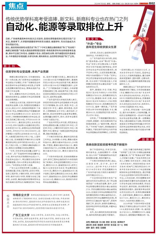 南都记者此前曾分析,今年高校招生的一大特点是,热门优势专业与战略新兴专业招生计划增加。许多广东高校结合学校优势学科专业布局和办学优势,扩招考生就读需求强烈的专业、聚焦未来新产业的新工科专业等。
