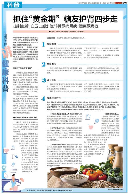 ●许翎(广东省人民医院老年内分泌科副主任医师) 中国2型糖尿病肾病的发病率高达10%-40%,尿蛋白的出现预示着患者发生糖尿病肾损害,同时也增加心血管疾病的发生风险。 糖尿病终末期——尿毒症,