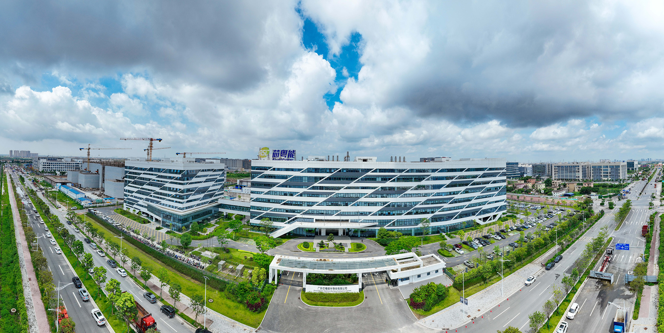 目前,紧邻深中通道南沙支线的万顷沙镇,一个占地面积超2平方公里的第三代化合物半导体产业园区已经建成。顺着万顷沙镇正翔路一路往前,南砂晶圆、芯粤能、芯聚能、联晶智能等多家“芯片大厂”在这里依次排开。业内将这里称作南沙“芯片一条街”。在这条街上,芯粤能、芯聚能连接着长三角、珠三角地区的汽车半导体产业链,而上游碳化硅衬底晶片厂家广州南砂晶圆半导体技术有限公司则连接着中山制晶基地。