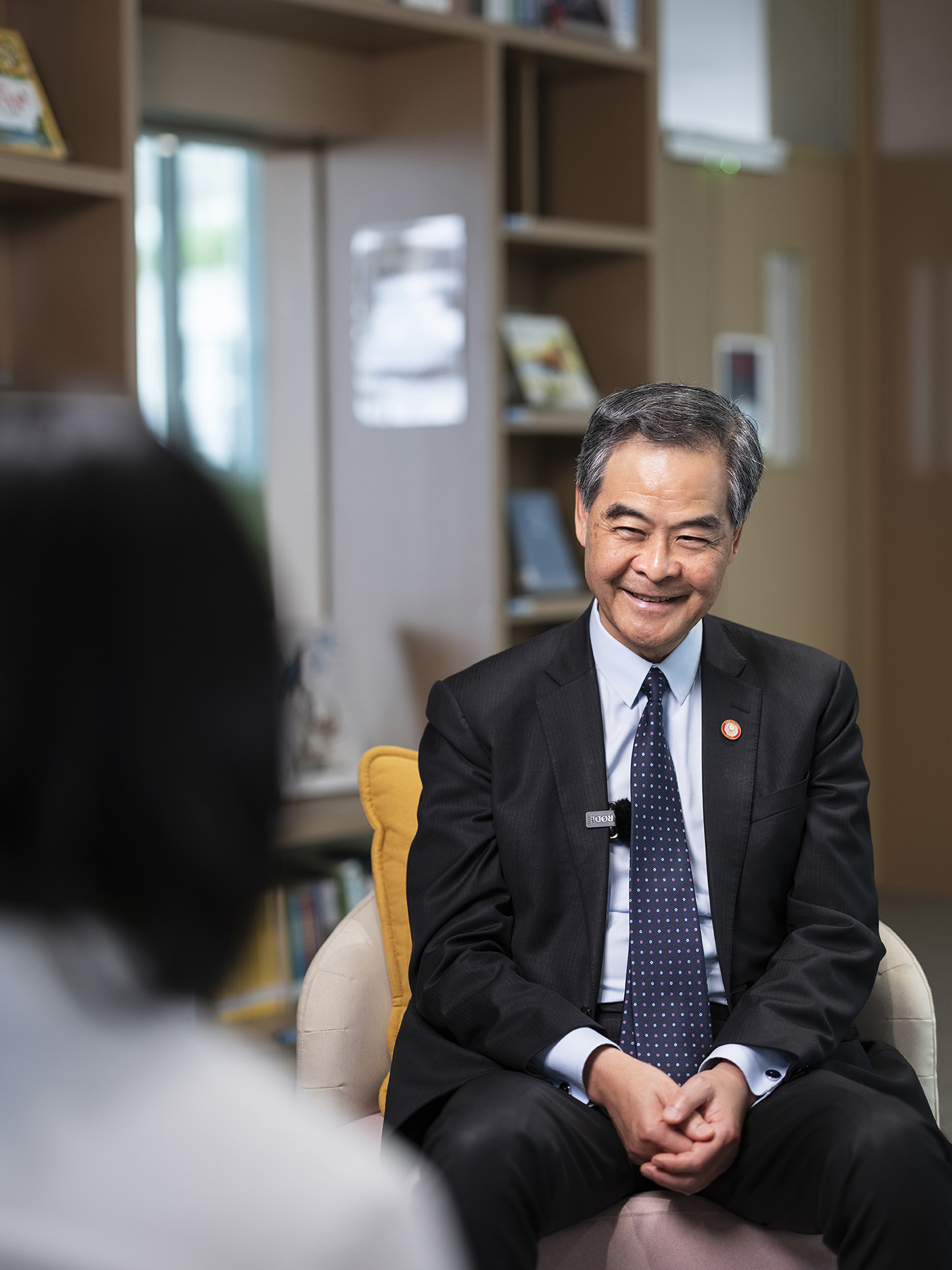梁振英:比如民心港人子弟学校所在的港式国际社区,通过咨询香港规划专家的意见,以香港的标准、香港人的生活习惯为规划导向展开设计,这在全国范围内是首创。