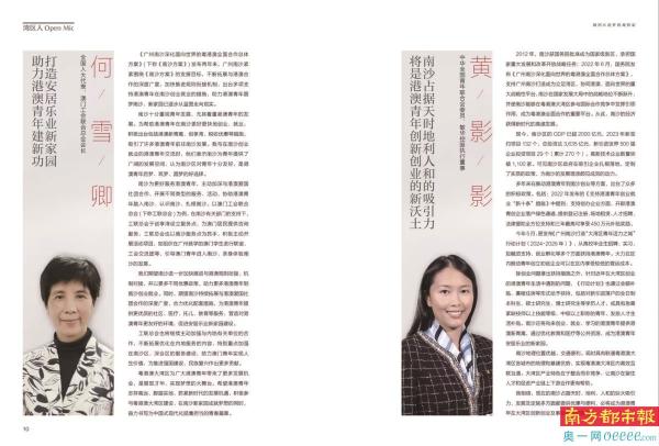 作为南方都市报出品,聚焦“湾区之心”广州南沙的高端杂志,《创享湾区》至今已经发刊三期。争做港澳青年“观察南沙的窗口”,一同携手逐梦南沙、创享湾区。港澳众多政商界人士在《创享湾区》分享了如何融入湾区发展的专业解读或故事,港澳青年群体也跟这本新“出生”的杂志产生了密切的联系。