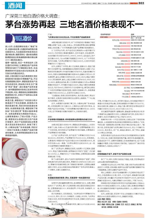 进入8月,白酒品牌纷纷进入“备战”状态,迎接中秋旺季,白酒的终端零售价格也备受关注。为全面呈现中秋前湾区白酒价格走势,南都湾财社-酒水新消费指数课题组经过多渠道数据采集后推出第三十二期《湾区酒价》