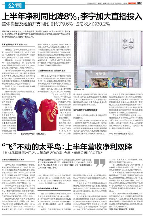 8月16日,李宁发布今年上半年业绩情况:营收同比增长2.3%至143.45亿元,净利润为19.52亿元,较去年同期下降8%。虽然净利润同比出现下滑,但也高于市场此前预期,李宁股票当天在开盘后一度涨