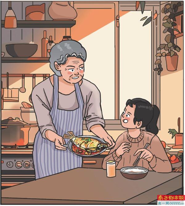 外婆像以前一样,细心地挑去鱼刺,然后将整条鱼最为鲜美肥厚的鱼腩夹到了我的碗里,软嫩弹牙的鱼肉,带着鸡肉的鲜香和猪肉的醇香,以及多种香料的复合味道,一同在嘴中融化开来,从喉咙徐徐流下,我一脸享受。再看外婆,她慈爱地看着我,好像看我享受美食,对她而言本身就是一种享受。