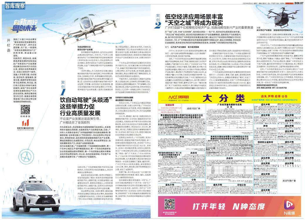 案例2 打“飞的”上班、外卖“从天而降”、低空观光游览……在广州,低空经济应用场景日渐丰富,“天空之城”将成为现实。低空经济是战略性新兴产业的重要赛道,是新质生产力的