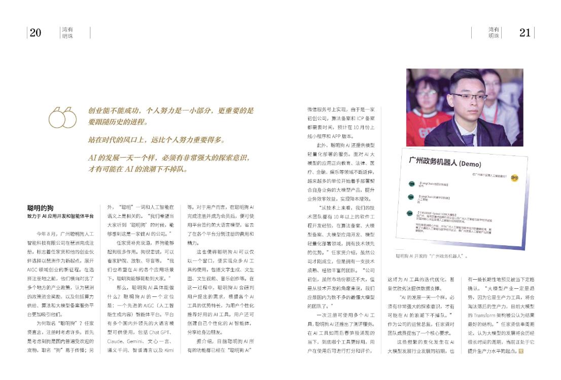 聪明狗AI开发的“广州政务机器人”。 任家贤 广州聪明狗人工智能科技有限公司运营总监 曾率领团队在第三届琶洲算法大