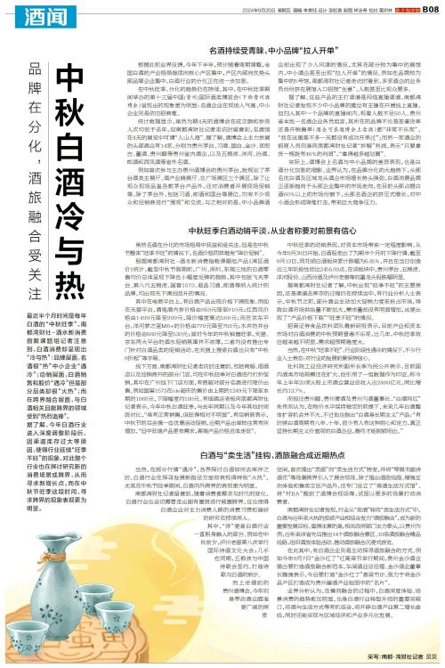 最近半个月时间是每年白酒的“中秋旺季”,南都湾财社-酒水新消费指数课题组记者注意到,白酒消费却呈现出“冷与热”:品牌层面,名酒很“热”中小企业“遇冷”;动销层面,白酒销售和股价“遇冷”但是部分品类
